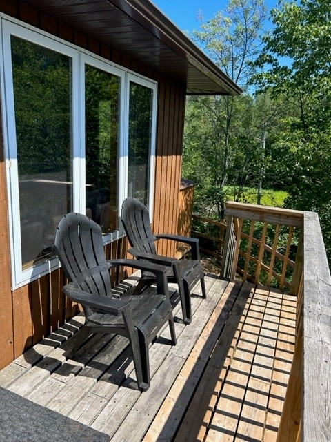 A very cozy 3-bedroom cottage with a King Bed in the master with separate Satellite TV, one Queen in the second room, and one Queen/Twin bunk in the third room. Extra Features – Stone Gas Fireplace, Satellite TV/DVD, Free Wi-Fi, and Dishwasher. Privately situated with steps up to a slight rise just off the waterfront which provides a spectacular view of Georgian Bay from a large Private Sundeck with BBQ. (Up to 6 persons, extra person charges will apply).